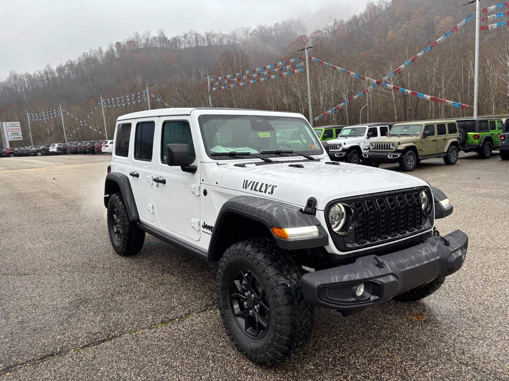 Discover the 2026 Jeep Wrangler Willys 4WD in Danville, WV ��" rugged capability paired with modern convenience at the best price in the area. This iconic off-roader features a fuel-efficient 4-cylinder, 2.0L gasoline engine that delivers responsive power on highway drives and confident torque on challenging trails. Equipped with Jeep’s legendary 4WD system and a factory Off-Road Package, this Willys is built for mud, rocks, and backcountry exploration while maintaining daily comfort. Stay connected and entertained with Apple CarPlay and Android Auto integration, and enjoy hands-free phone calls and streaming thanks to Bluetooth connectivity. Cold mornings are no problem with convenient Remote Start, so your cabin is ready when you are. The Willys trim adds unique styling cues and functional features designed for off-road performance, making it a standout choice for adventurers who want capability without sacrificing tech. Located in Danville, WV, this Jeep Wrangler Willys is priced to sell ��" offering the best value nearby for drivers seeking a capable 4x4 with modern tech. Don’t miss this opportunity to own a versatile, dependable Jeep Wrangler that blends trail-ready features with everyday practicality. Contact our Danville lot today to schedule a test drive and lock in the best price.