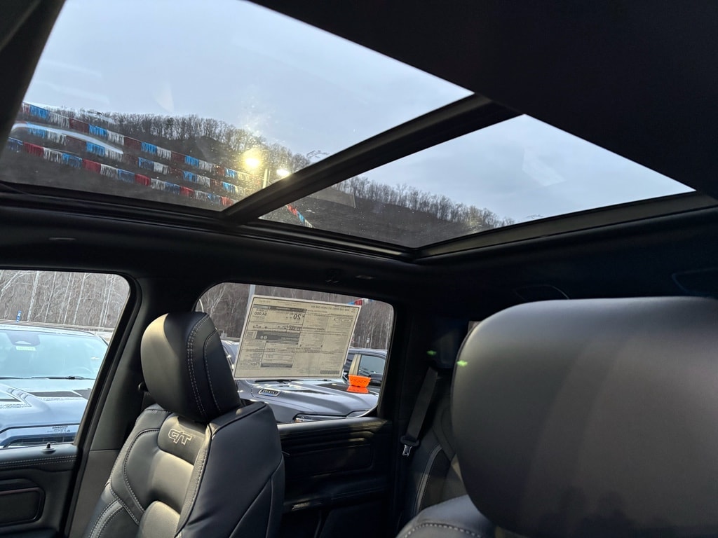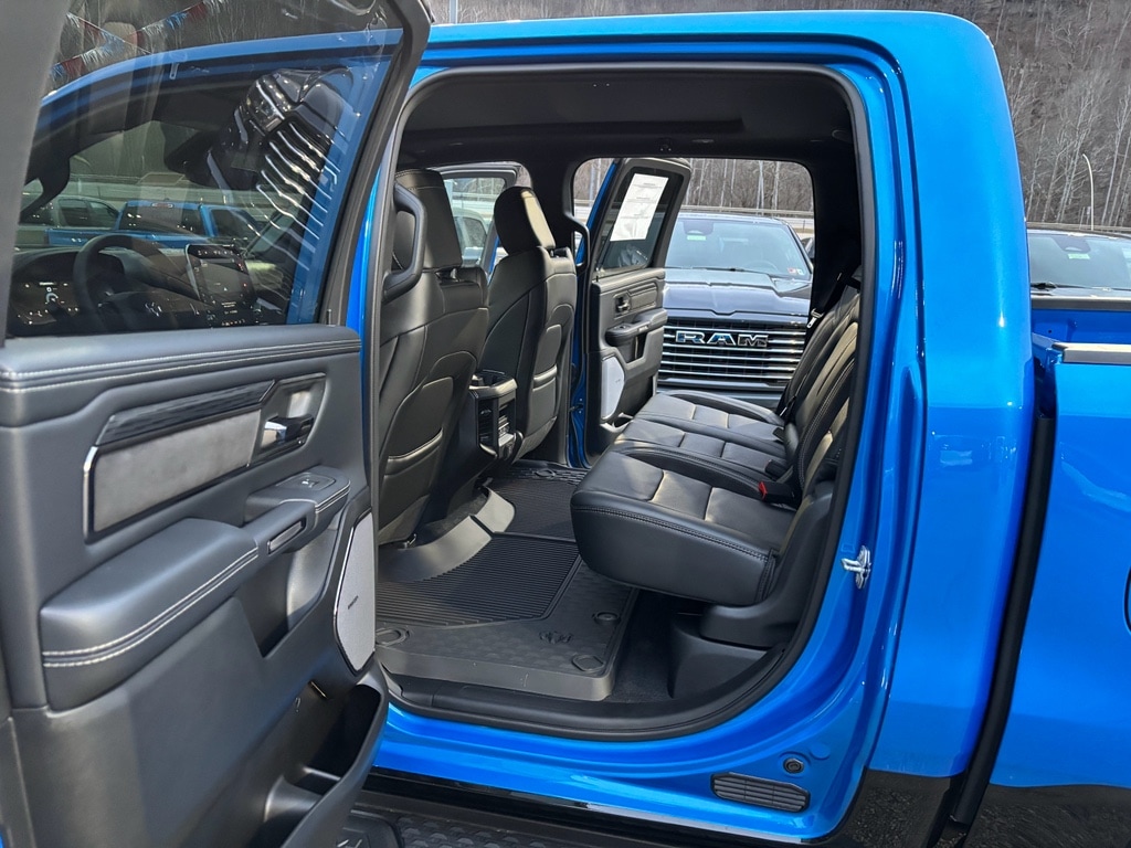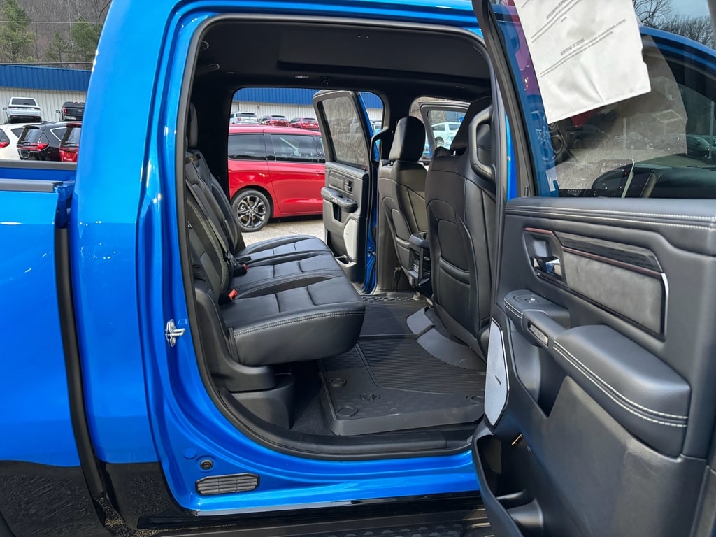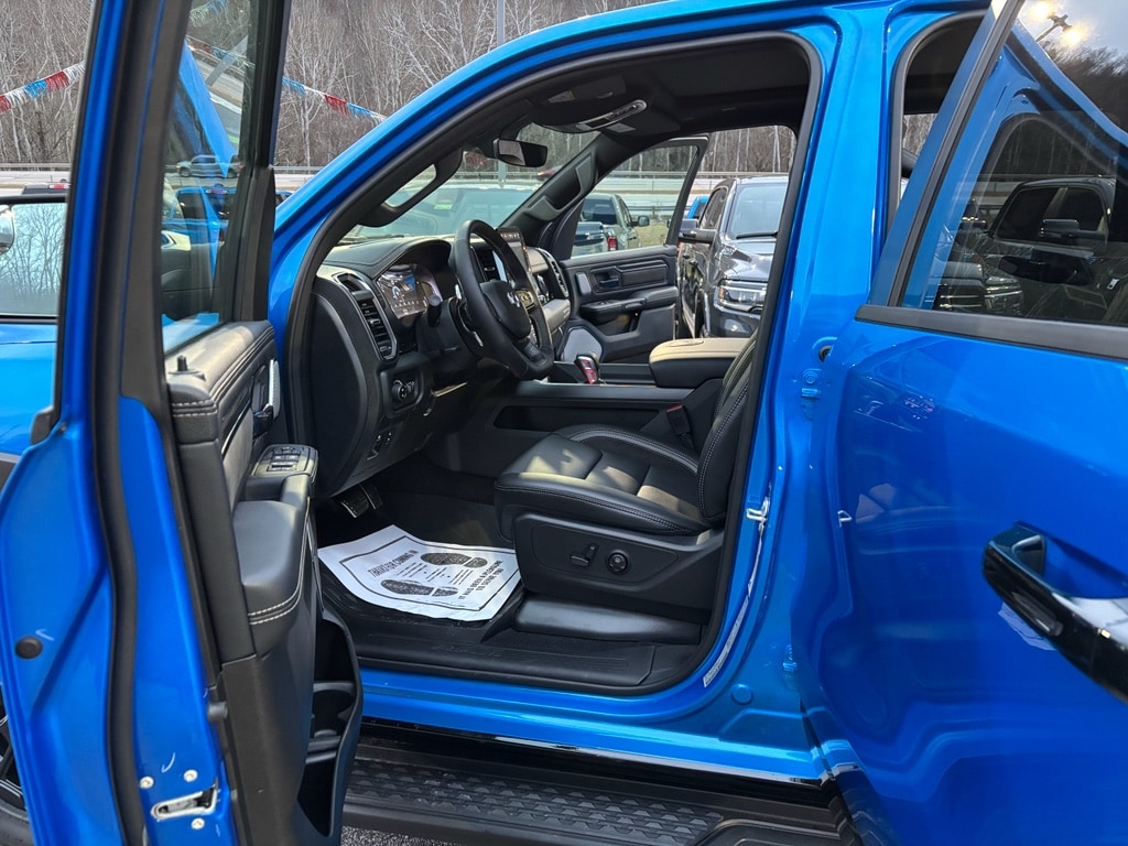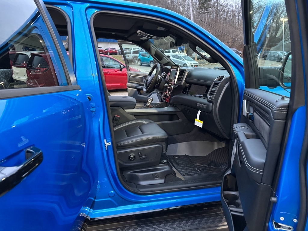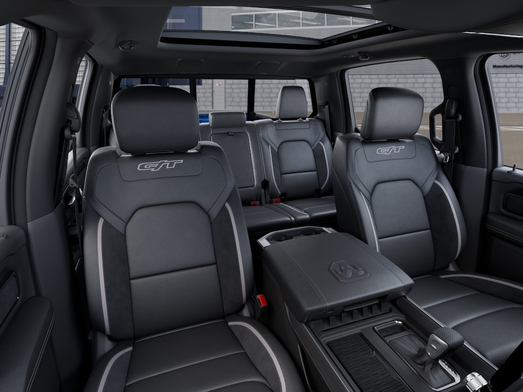 G/T Package: Floor Console; Under Seat Lighting; Leather/vinyl Bucket Seats; G/T Decal; Leather Wrapped Shift Knob; Leather-Wrapped Steering Wheel; Steering Wheel Mounted Shift Control; G/T Exhaust; GT Interior Theme; MOPAR Bright Pedal Kit; Performance Pages. Quick Order Package 21W Rebel. Rebel Level 2 Equipment Group: Google Android Auto; SiriusXM Radio Service; USB Host Flip; Rear Window Defroster; Rain Sensitive Windshield Wipers; Integrated Center Stack Radio; Power Adjustable Pedals with Memory; Front Passenger Interactive Display; Integrated Voice Command with Bluetooth; Connectivity - US/Canada; Auto Power-Folding Mirrors; GPS Navigation; 4G LTE Wi-Fi Hot Spot; 115V Auxiliary Rear Power Outlet; GPS Antenna Input; Media Hub with 2 Charge Only USBs; Exterior Mirrors with Heating Element; Proximity Approach/departure Lamps; Auto Dim Exterior Driver Mirror; SiriusXM with 360L; Accent Color Door Handles; Global Telematics Box Module; Connected Travel and Traffic Services; Heated Second Row Seats; Power Adjust 8-Way Front Passenger Seat; Security Alarm; Apple CarPlay; Black Painted Exterior Mirrors Caps; Off-Road Information Pages; Exterior Mirrors Approach Lamps; Disassociated Touchscreen Display; HD Radio; Smartphone as a Key Capable; 14.4 Touchscreen Display; Accent Color Premium Power Mirrors; Dual Wireless Charging Pad; Exterior Mirrors with Supplemental Signals; Exterior Mirrors Courtesy Lamps; Uconnect 5 Nav with 14.4 Display; Harman/kardon 19 Speaker Premium Sound; 2-Door Passive Entry. Front Door Locks; Accent Color Tailgate Handle; Exterior Mirrors with Memory; Driver Seat Memory; Power Tailgate; Convex Wide-Angle Exterior Mirror Insert; Radio/driver Seat/mirrors/pedals Memory. Dual-Pane Panoramic Sunroof. MOPAR Black Tubular Side Steps. Trailer Brake Control. Hydro Blue Pearlcoat. Hydro Blue Pearlcoat. **Equipment listed is based on original vehicle build and subject to change. Please confirm the accuracy of the included equipment by calling the dealer prior to purchase.**
