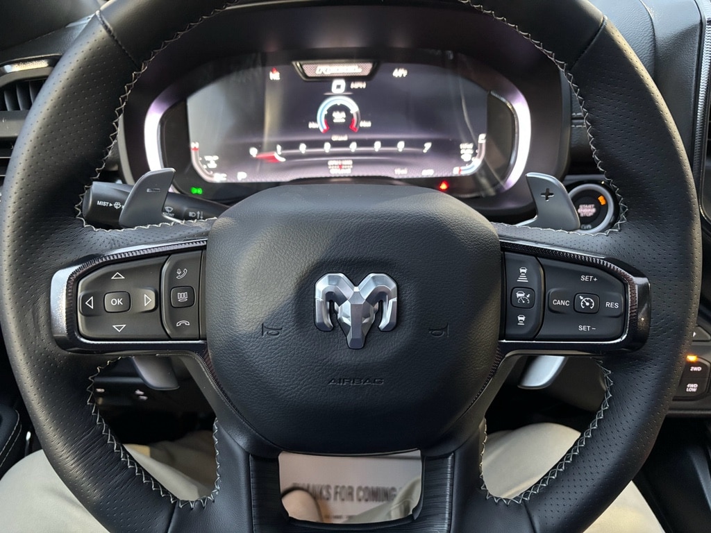 This Ram 1500's Forward Collision Warning feature alerts drivers to potential front-end collisions. This 1/2 ton pickup comes equipped with Android Auto for seamless smartphone integration on the road. This vehicle is pure luxury with a heated steering wheel. This model features a hands-free Bluetooth phone system. It offers Apple CarPlay for seamless connectivity. See what's behind you with the back up camera on it. Never get into a cold vehicle again with the remote start feature on the vehicle. The vehicle is equipped with the latest generation of XM/Sirius Radio. An off-road package is installed on this vehicle so you are ready for your four-wheeling best. You'll never again be lost in a crowded city or a country region with the navigation system on this model. The leather seats in this vehicle are a must for buyers looking for comfort, durability, and style. This 2026 Ram 1500 has a premium sound system installed.