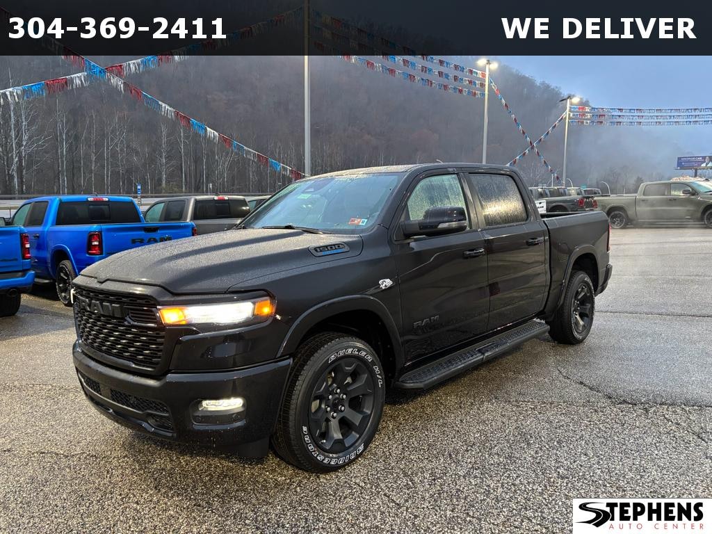 Quick Order Package 27Z Big Horn. Big Horn Level 2 Equipment Group: Google Android Auto; SiriusXM Radio Service; USB Host Flip; Power Adjustable Pedals; Leather Wrapped Steering Wheel; Integrated Voice Command with Bluetooth; 12 Touchscreen Display; Glove Box Lamp; Auto Power-Folding Mirrors; 115V Auxiliary Rear Power Outlet; Media Hub with 2 Charge Only USBs; Heated Front Seats; Security Alarm; Black Premium Power Mirrors; Apple CarPlay; Premium Overhead Console; 9 Amplified Speakers with Subwoofer; Disassociated Touchscreen Display; Body Color Fender Flares; Remote Tailgate Release; 115V Auxiliary Power Outlet; LED Dome Lamp with On/off Switch; Universal Garage Door Opener; 2nd Row in Floor Storage Bins; Sun Visors with Illuminated Vanity Mirrors; LED Footwell Lighting; Rear Window Defroster; Integrated Center Stack Radio; Rear View Auto Dim Mirror; Rear Power Sliding Window; Connectivity - US/Canada; GPS Navigation; 4G LTE Wi-Fi Hot Spot; GPS Antenna Input; Overhead LED Lamps; Exterior Mirrors with Heating Element; Auto Dim Exterior Driver Mirror; SiriusXM with 360L; Global Telematics Box Module; Connected Travel and Traffic Services; Heated Steering Wheel; Configurable Drive Mode; 400W Inverter; HD Radio; Deluxe Cloth Bucket Seats; Uconnect 5 Navigation with 12.0 Display Radio; Exterior Mirrors with Supplemental Signals; Steering Wheel Mounted Audio Controls; Exterior Mirrors Courtesy Lamps; Air Conditioning ATC with Dual Zone Control; Cluster 7.0 TFT Color Display; Convex Wide-Angle Exterior Mirror Insert. Night Edition: 275/55R20 OWL All Season Tires; Accent Color Premium Power Mirrors; Exterior Mirrors with Supplemental Signals; Black Headlamp Bezels; Exterior Mirrors Courtesy Lamps; Grille Black Surround Black Mesh; Auto Power-Folding Mirrors; Exterior Mirrors with Heating Element; 20 X 9.0 Aluminum Painted Clad Wheels; Auto Dim Exterior Driver Mirror; Black Exterior Truck Badging; Anti-Spin Differential Rear Axle; Accent Color Door Handles; Accent Color Tailgate Handle; Black Interior Accents; Dual Exhaust with Black Tips; Body Color Front Bumper; Convex Wide-Angle Exterior Mirror Insert; Body Color Rear Bumper with Step Pads; Black Tail Lamp Bezels; RAM Grille Badge - Black; Black Painted Exterior Mirrors Caps. Quick Order Package 23Z Big Horn. 9 Amplified Speakers with Subwoofer. MOPAR Black Tubular Side Steps. Anti-Spin Differential Rear Axle. 33 Gallon Fuel Tank. Trailer Brake Control. Diamond Black Crystal PC. Cluster 12 TFT Color Display. MOPAR Front and Rear Rubber Floor Mats. 3.92 Rear Axle Ratio. **Equipment listed is based on original vehicle build and subject to change. Please confirm the accuracy of the included equipment by calling the dealer prior to purchase.**