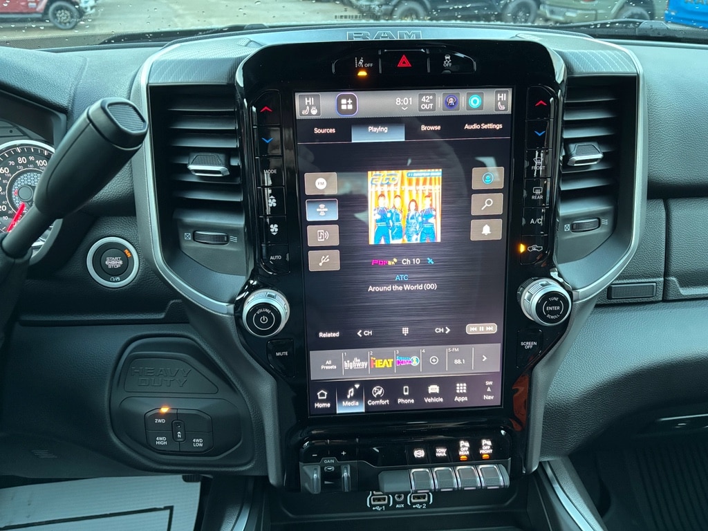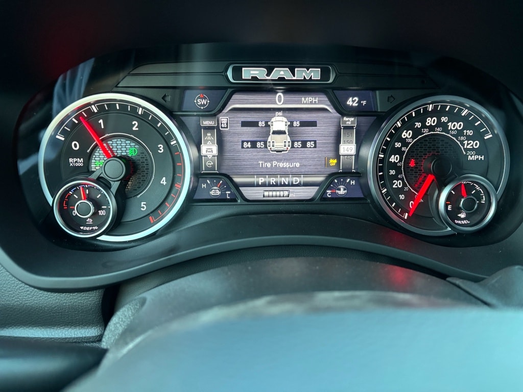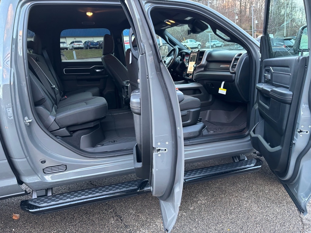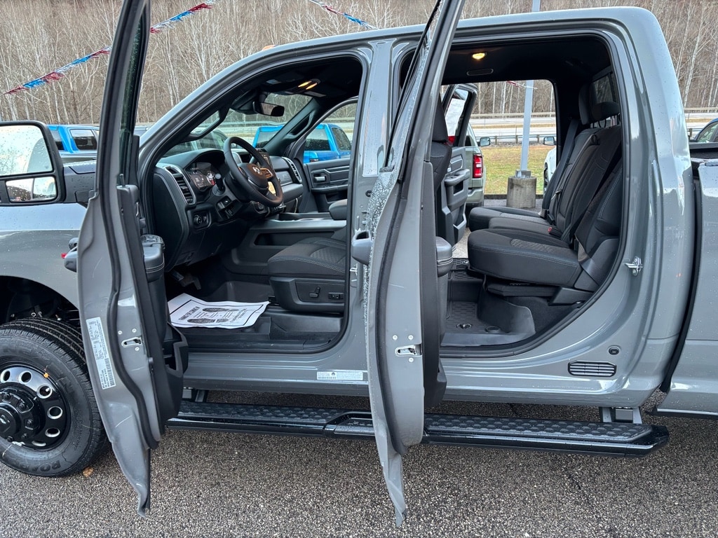 Quick Order Package 24Z Big Horn. Night Edition. Big Horn Level 2 Plus Equipment Group: Google Android Auto; SiriusXM Radio Service; Surround View Camera System; Blind Spot and Cross Path Detection; For Details Visit DriveUconnect.com; Power Adjustable Pedals; For More Info. Call 800-643-2112; Integrated Voice Command with Bluetooth; Emergency Vehicle Alert System (EVAS); 12 Touchscreen Display; Glove Box Lamp; Auto Power-Folding Mirrors; Footwell Courtesy Lamp; Drowsy Driver Detection; Heated Front Seats; Mirror Running Lights; MOPAR Deployable Bed Step; Exterior 115V AC Outlet; Alexa Built-In; Apple CarPlay; Premium Cloth Bucket Seats; Power-Adjustable Convex Aux Mirrors; Active Lane Management System; Forward and Reverse Utility Lights; Locking Lower Glove Box; Remote Start System; 9 Alpine Speakers with Subwoofer; Disassociated Touchscreen Display; Dual Wireless Charging Pad; Trailer Tire Pressure Monitoring System; Dual Glove Boxes; 115-Volt Auxiliary Front Power Outlet; Universal Garage Door Opener; 2nd Row in Floor Storage Bins; Sun Visors with Illuminated Vanity Mirrors; Center Stop Lamp with Cargo View Camera; Rain Sensitive Windshield Wipers; Rear View Auto Dim Mirror; Rear Power Sliding Window; Rear Dome with On/off Switch Lamp; LED Bed Lighting; Connectivity - US/Canada; Traffic Sign Recognition; GPS Navigation; 4G LTE Wi-Fi Hot Spot; Adaptive Steering System; GPS Antenna Input; Exterior Mirrors with Heating Element; SiriusXM with 360L; Global Telematics Box Module; Connected Travel and Traffic Services; Heated Steering Wheel; Foam Bottle Insert (door Trim Panel); Black Exterior Mirrors; Dampened Tailgate; Trailer Reverse Guidance; Big Horn Instrument Panel Badge; Off-Road Information Pages; Selectable Tire Fill Alert; Trailer Tow Pages; 400W Inverter; HD Radio; Uconnect 5 Navigation with 12.0 Display Radio; Power Heated Fold Telescopic Mirrors; Exterior Mirrors with Supplemental Signals; Steering Wheel Mounted Audio Controls; Exterior Mirrors Courtesy Lamps; Air Conditioning ATC with Dual Zone Control; MOPAR Spray in Bedliner; Auto High Beam Headlamp Control; Cluster 7.0 TFT Color Display; Power Adjust Mirrors; Luxury Steering Wheel; Power Telescoping Mirrors. Dual Rear Wheels: Clearance Lamps; LT235/80R17E BSW All Season Tires; 17 Steel Spare Wheel; Box and Rear Fender Clearance Lamps; 6000# Front Axle with Hub Extension; Nexen Brand Tires; 14. 000 Lb GVWR; Rear Wheelhouse Liners. Quick Order Package 2UZ Big Horn. Painted Flat Cab-Length Side Steps. Blind Spot and Cross Path Detection. 5th Wheel/gooseneck Towing Prep Group. Premium Cloth Bucket Seats. Remote Start System. MOPAR Front and Rear Rubber Floor Mats. Rear Wheelhouse Liners. Clearance Lamps. Power 2-Way Driver Lumbar Adjust. **Equipment listed is based on original vehicle build and subject to change. Please confirm the accuracy of the included equipment by calling the dealer prior to purchase.**