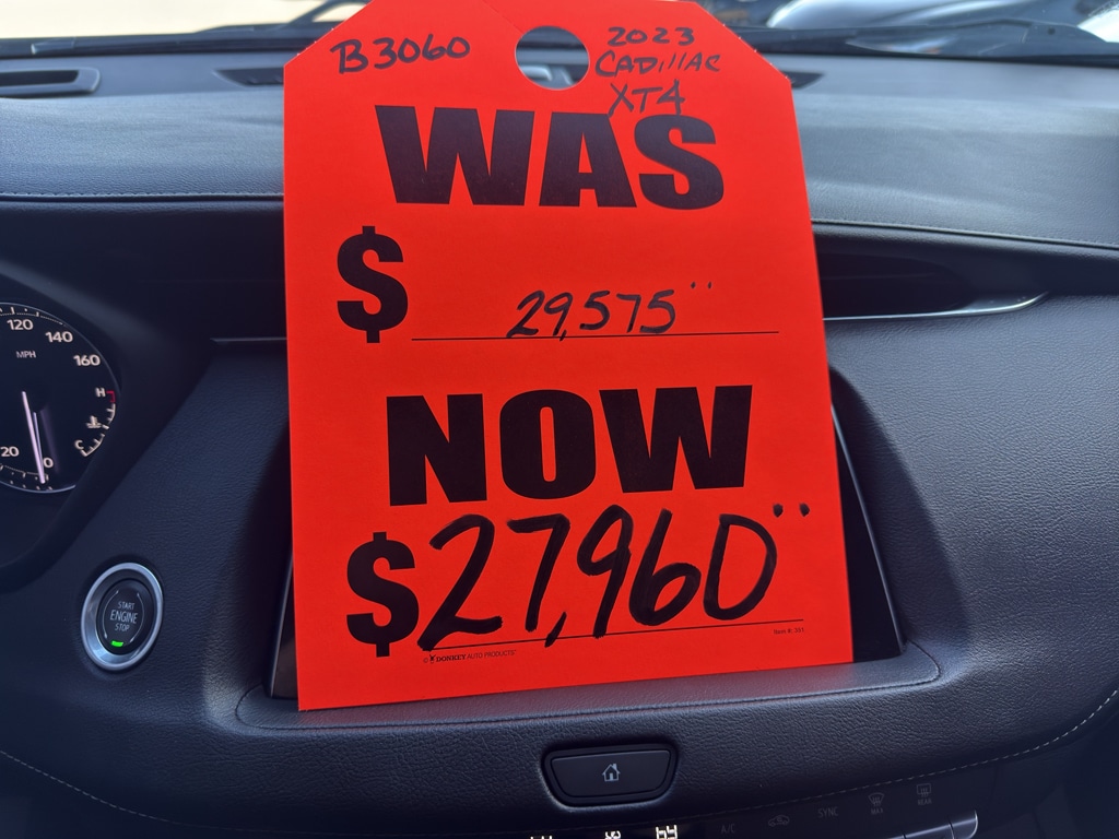 The leather seats in the vehicle are a must for buyers looking for comfort, durability, and style. Lane Keep Assist in this model helps maintain safe driving by gently steering to stay within the lane. The Cadillac XT4 comes equipped with Android Auto for seamless smartphone integration on the road. Protect this unit from unwanted accidents with a cutting edge backup camera system. The state of the art park assist system will guide you easily into any spot. Apple CarPlay: Seamless smartphone integration for this 2023 Cadillac XT4 - stay connected and entertained on the go! This small suv offers Automatic Climate Control for personalized comfort. Start the vehicle from inside with remote start. This small suv's Lane Departure Warning keeps you safe by alerting you when you drift from your lane. The Cadillac XT4 features a hands-free Bluetooth phone system. Conquer any rainy, snowy, or icy road conditions this winter with the all wheel drive system on the vehicle.