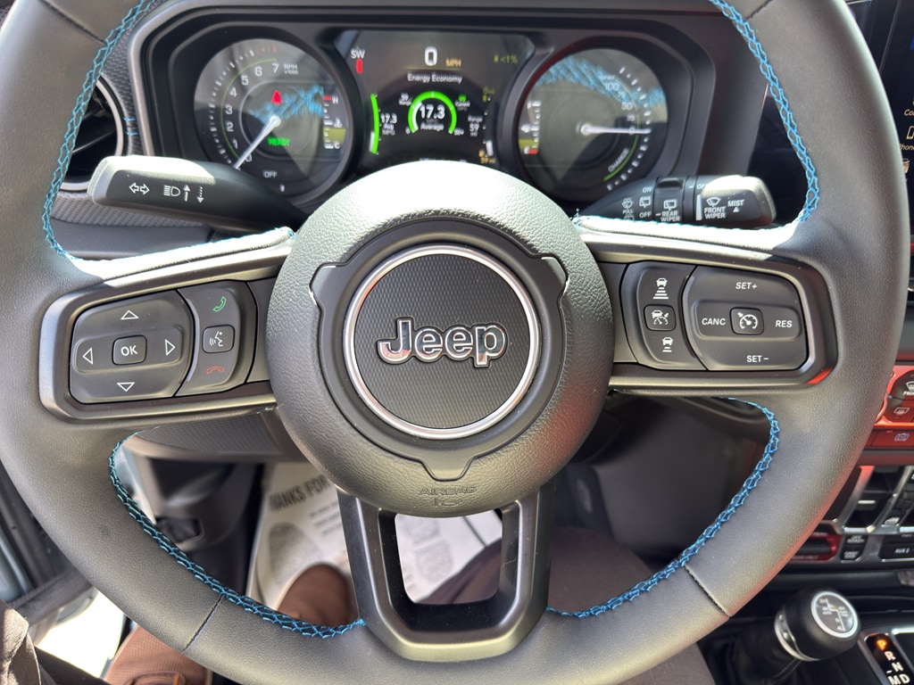 Never get into a cold vehicle again with the remote start feature on this unit. This 1/2 ton suv has auto-adjust speed for safe following. This Jeep Wrangler 4xe offers Android Auto for seamless smartphone integration. This 2025 Jeep Wrangler 4xe features a hands-free Bluetooth phone system. This 1/2 ton suv keeps you comfortable with Auto Climate. This 2025 Jeep Wrangler 4xe is pure luxury with a heated steering wheel. This unit's Forward Collision Warning system alerts the driver to potential front-end collisions, enhancing safety. The rear parking assist technology on this unit will put you at ease when reversing. The system alerts you as you get closer to an obstruction. Protect it from unwanted accidents with a cutting edge backup camera system. This 2025 Jeep Wrangler 4xe offers Apple CarPlay for seamless connectivity. An off-road package is equipped on it. This Jeep Wrangler 4xe has a 4 Cyl, 2.0L high output engine.