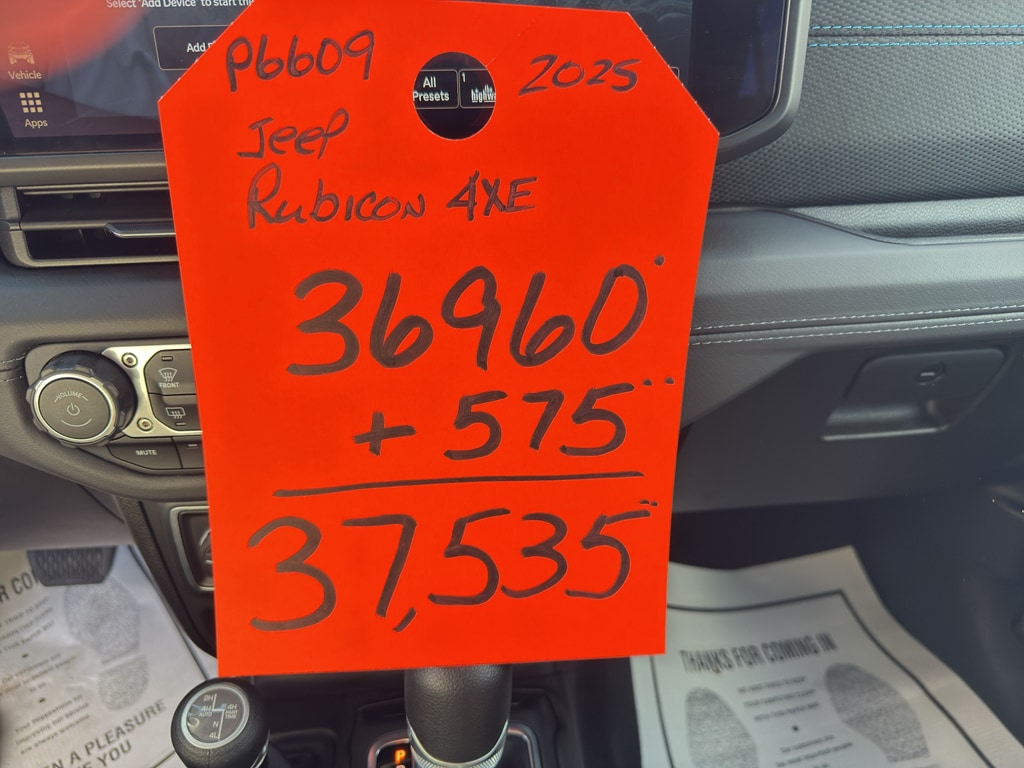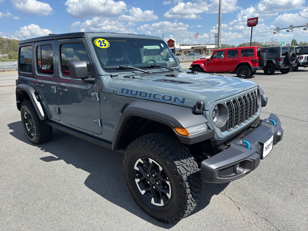 Adventure-ready and eco-smart, this 2025 Jeep Wrangler 4xe Rubicon in Danville, WV is a one-of-a-kind blend of rugged capability and modern hybrid technology. With just 12,343 low miles, this 4WD plug-in hybrid pairs a spirited 2.0L 4-cylinder engine with electric power to deliver impressive performance on and off the beaten path. The Rubicon trim brings trail-focused hardware plus premium comfort and convenience features for a refined driving experience. Step inside to find a tech-forward cabin equipped with Adaptive Cruise Control for confident highway cruising, Hands-Free Bluetooth for seamless connectivity, and Remote Start for weather-ready comfort before you even step in. Apple CarPlay and Android Auto keep your favorite apps and navigation at your fingertips, while durable interior materials and thoughtful storage make this Wrangler as practical as it is capable. Exterior Rubicon touches include rugged tires, reinforced bumpers, and signature styling that stand out in town or on remote trails. The PHEV powertrain gives you electric-driven capability when you want efficiency and instant torque, while traditional engine power is ready for heavy-duty trail work. Located in Danville, WV, this 2025 Jeep Wrangler 4xe Rubicon with low miles is a rare find for drivers who want a versatile, tech-rich, trail-capable vehicle. Schedule a test drive and experience the unique combination of electric innovation and legendary Wrangler capability firsthand.