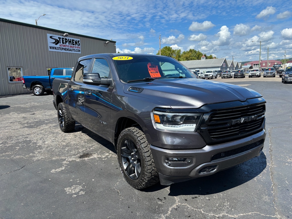 Introducing the 2021 Ram 1500 Big Horn, a robust and stylish pickup that combines power and versatility. This particular model is equipped with a reliable V6, 3.6L engine, and an efficient 4WD system, ensuring you can tackle any terrain with confidence and ease. Known for its impressive towing capabilities and smooth ride quality, the Ram 1500 Big Horn is the ideal choice for both work and leisure. The exterior showcases a bold design, complemented by rugged alloy wheels and distinctive chrome accents. Inside, the cabin offers a spacious and comfortable environment, featuring premium cloth upholstery and modern conveniences that enhance every journey. Stay connected and entertained with the integrated Android Auto system, providing seamless access to your favorite apps and navigation tools. The XM Radio ensures a wide variety of entertainment options to suit any taste. For added convenience and safety, this model is equipped with a Back-Up Camera and Rear Parking Sensors, making parking and maneuvering in tight spaces effortless. The Remote Start feature allows you to warm up the engine and cabin on chilly mornings, providing comfort and convenience at the touch of a button. Experience the perfect blend of capability and luxury with the 2021 Ram 1500 Big Horn.