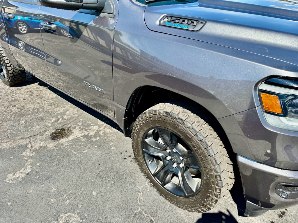This vehicle offers Apple CarPlay for seamless connectivity. Protect this vehicle from unwanted accidents with a cutting edge backup camera system. It keeps you comfortable with Auto Climate. The state of the art park assist system will guide you easily into any spot. Keep your hands warm all winter with a heated steering wheel in the vehicle . This unit features a hands-free Bluetooth phone system. It has satellite radio capabilities. This Ram 1500 comes equipped with Android Auto for seamless smartphone integration on the road. This unit is equipped with the latest generation of XM/Sirius Radio. Start it from inside with remote start. This Ram 1500 has four wheel drive capabilities. This unit has adjustable pedals that are luxurious and safety conscious. Maintaining a stable interior temperature in the vehicle is easy with the climate control system. This 1/2 ton pickup projects refinement with a racy metallic gray exterior.