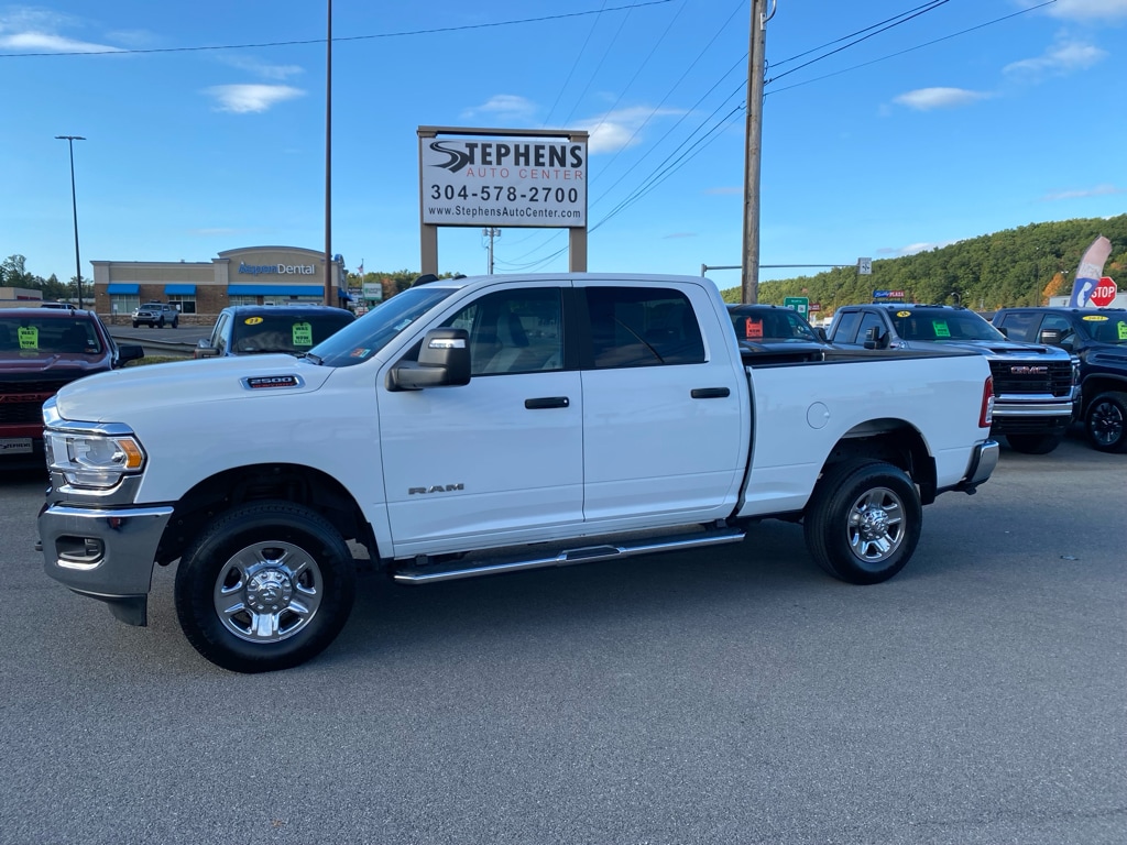 This unit offers Android Auto for seamless smartphone integration. Bluetooth technology is built into this 3/4 ton pickup, keeping your hands on the steering wheel and your focus on the road. Apple CarPlay: Seamless smartphone integration for the Ram 2500 - stay connected and entertained on the go! Protect this Ram 2500 from unwanted accidents with a cutting edge backup camera system. This vehicle has a V8, 6.4L high output engine. When you encounter slick or muddy roads, you can engage the four wheel drive on this 2024 Ram 2500 and drive with confidence. With the keyless entry system on this 3/4 ton pickup you can pop the trunk without dropping your bags from the store. A trailer braking system is already installed on the vehicle. This 2024 Ram 2500 embodies class and sophistication with its refined white exterior. The high efficiency automatic transmission shifts smoothly and allows you to relax while driving.