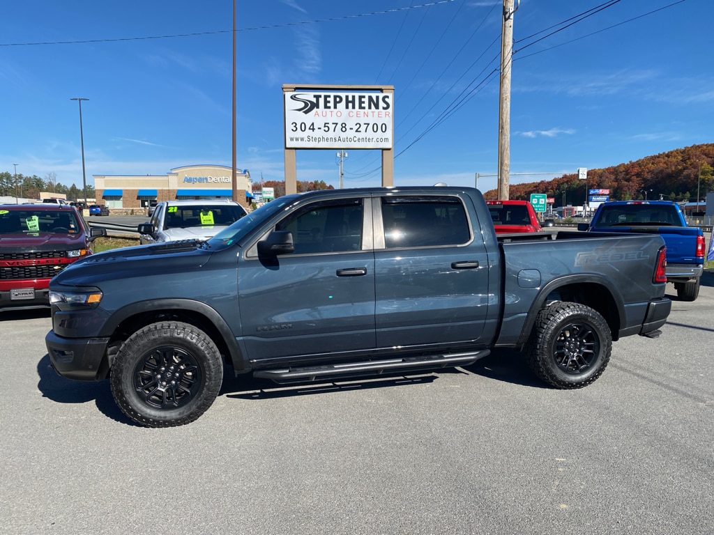 Ready to tackle any terrain, this 2025 Ram 1500 Rebel with only 8,548 miles delivers power, capability, and styleâ€"located in Danville, WV. Built for weekend adventurers and daily drivers alike, the Rebel pairs a torque-rich 6-cylinder 3.0L gasoline engine with 4WD for confident handling on mud, snow, or pavement. Low mileage means years of reliable performance and higher resale value, and this Ram is offered at the best price in the areaâ€"exceptional value for a loaded, like-new truck. The Off-Road Package upgrades suspension, tires, and underbody protection for serious off-highway capability, while the Rebel’s rugged exterior and signature styling make a bold statement wherever you go. Technology and convenience are front-and-center with Remote Start for chilly mornings, Hands-Free Bluetooth for safer calls and media, and a Back-Up Camera for precise parking and trailer hookups. Safety features include Forward Collision Warning to help prevent surprises on busy roads. Whether hauling gear, towing a trailer, or cruising the highway, this Ram 1500 Rebel combines comfort, utility, and off-road readiness. With low miles, comprehensive features, and the best local pricing, it’s a smart buy for anyone seeking a capable 4WD pickup in Danville, WV. Schedule a test drive today and experience the capability and value this Ram 1500 Rebel brings to the road.