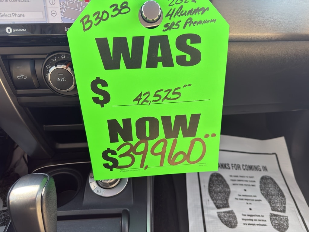 2022 Toyota 4Runner SR5 Premium AWD â€" Danville WV best price! This rugged yet refined SUV pairs a proven 4.0L V6 gasoline engine with available four-wheel drive for confident handling in West Virginia weather and off-road trips. The SR5 Premium trim adds premium comforts like leather seats and advanced tech features to keep every drive comfortable and connected. Safety and convenience come standard: Cross-Traffic Alert and a Back-Up Camera help you maneuver parking lots and tight trails, while Navigation keeps you on course for weekend getaways. Seamless smartphone integration through Android Auto lets you access maps, messages, and music hands-free. Clean, well-maintained, and competitively priced â€" this Toyota 4Runner offers exceptional value and is being sold at the best price in Danville, WV. Ideal for families, outdoor enthusiasts, or anyone seeking a reliable SUV with strong resale value and Toyota durability. Highlights: - 2022 Toyota 4Runner SR5 Premium - 4.0L V6 gasoline engine with AWD capability - Leather seats, Navigation, Android Auto - Cross-Traffic Alert, Back-Up Camera - Located in Danville, WV â€" best price available Contact us today to schedule a test drive and see why this Toyota 4Runner delivers comfortable daily driving and adventure-ready capability at a great value.
